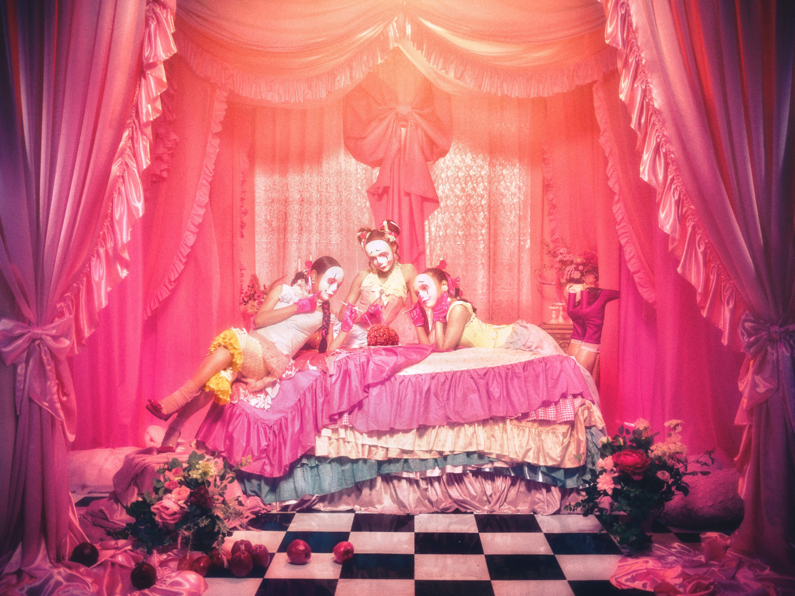 映像作家ではないですが、ドラァグクイーンが大好きで、影響を受けていると思います。大胆でコミカルでおしゃれなファッションやダークなユーモア、派手なパフォーマンスなどからたくさんの刺激を受けています。