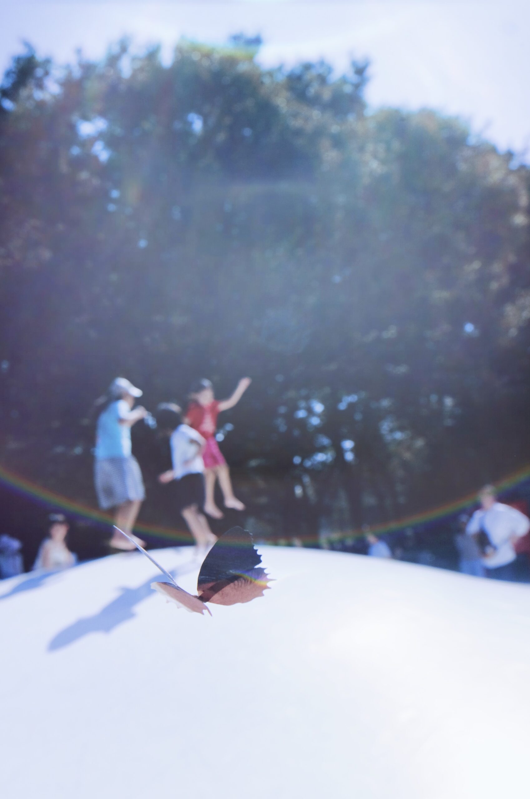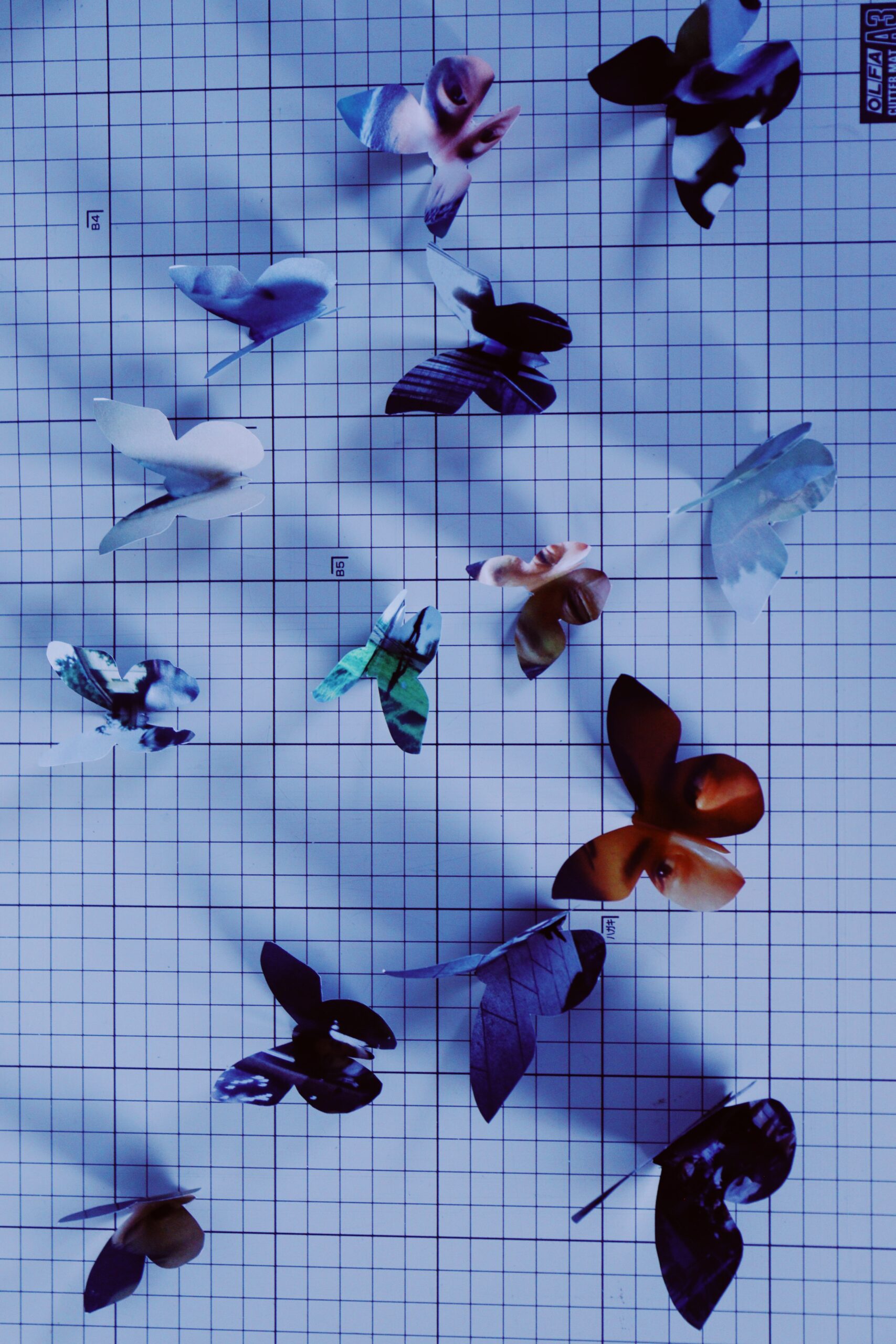 撮影した写真を蝶の形にトリミングし、羽を折って立たせてみると、それまでただの写真だったものに、急に息が吹き込まれたように見えてきました。風に揺れると、ゆっくりと羽を動かし、呼吸しているようにも感じられます。