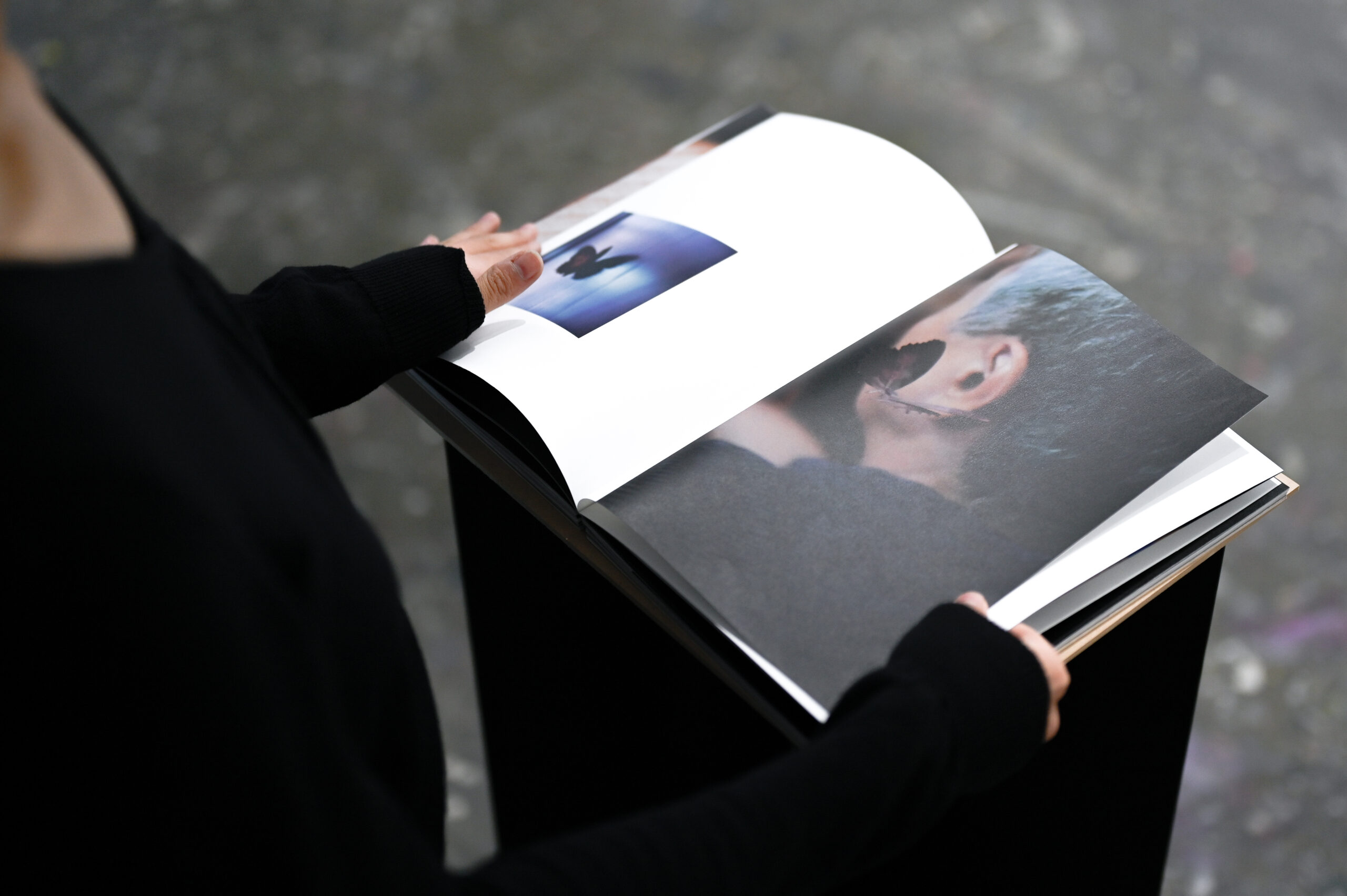 その蝶を今度は日常の中に置き、もう一度撮影してみる。すると、自分の手で切り取ってしまった過去の断片が、蝶というメタファーを借りて、再び生きはじめたように感じられました。では、蝶に印刷された元の写真に、さらに別の見え方を与えることはできないだろうか。