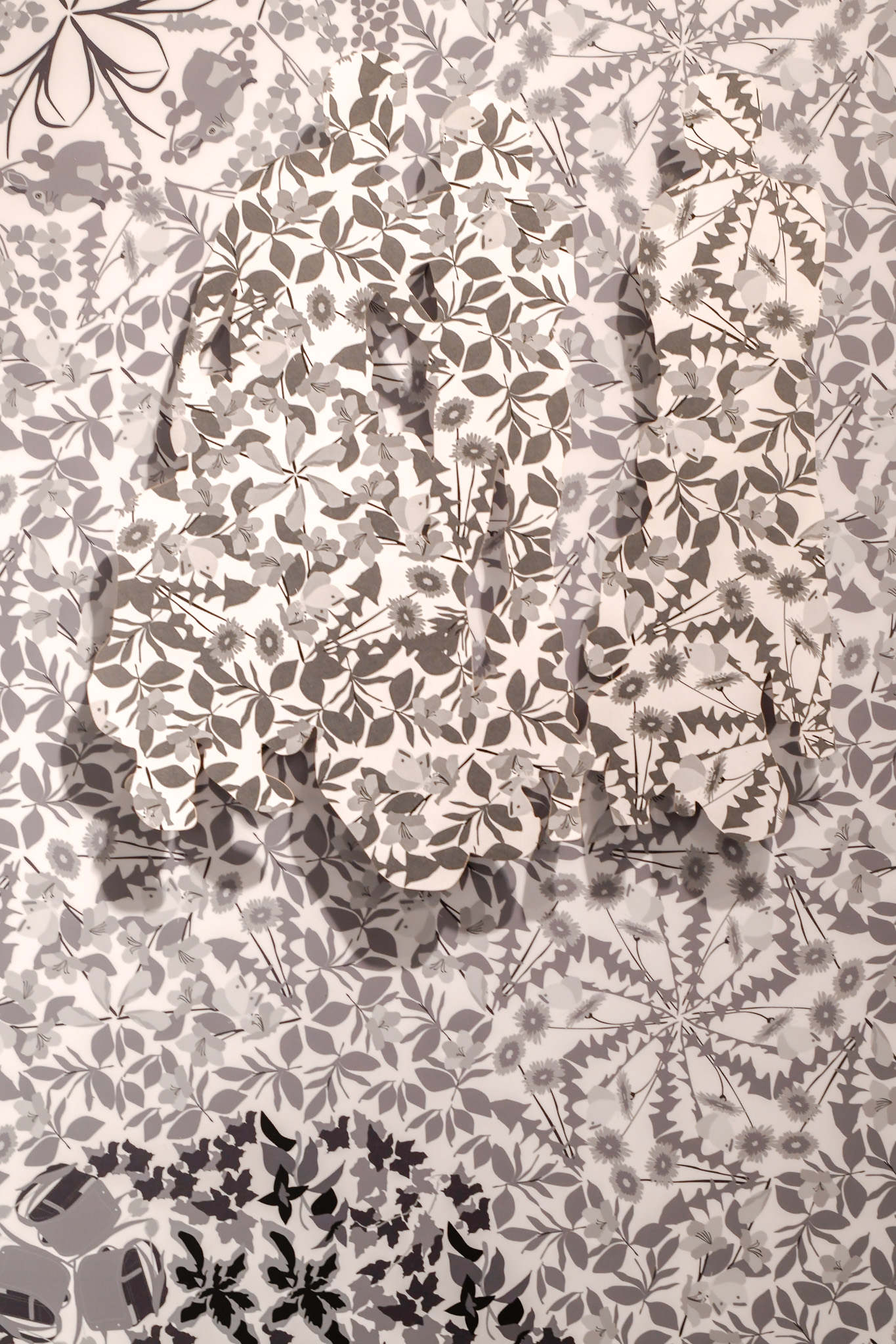 この作品は、自分の家の庭にある植物をもとに生成した模様(パターン)の中に、家族写真を重ねた作品です。