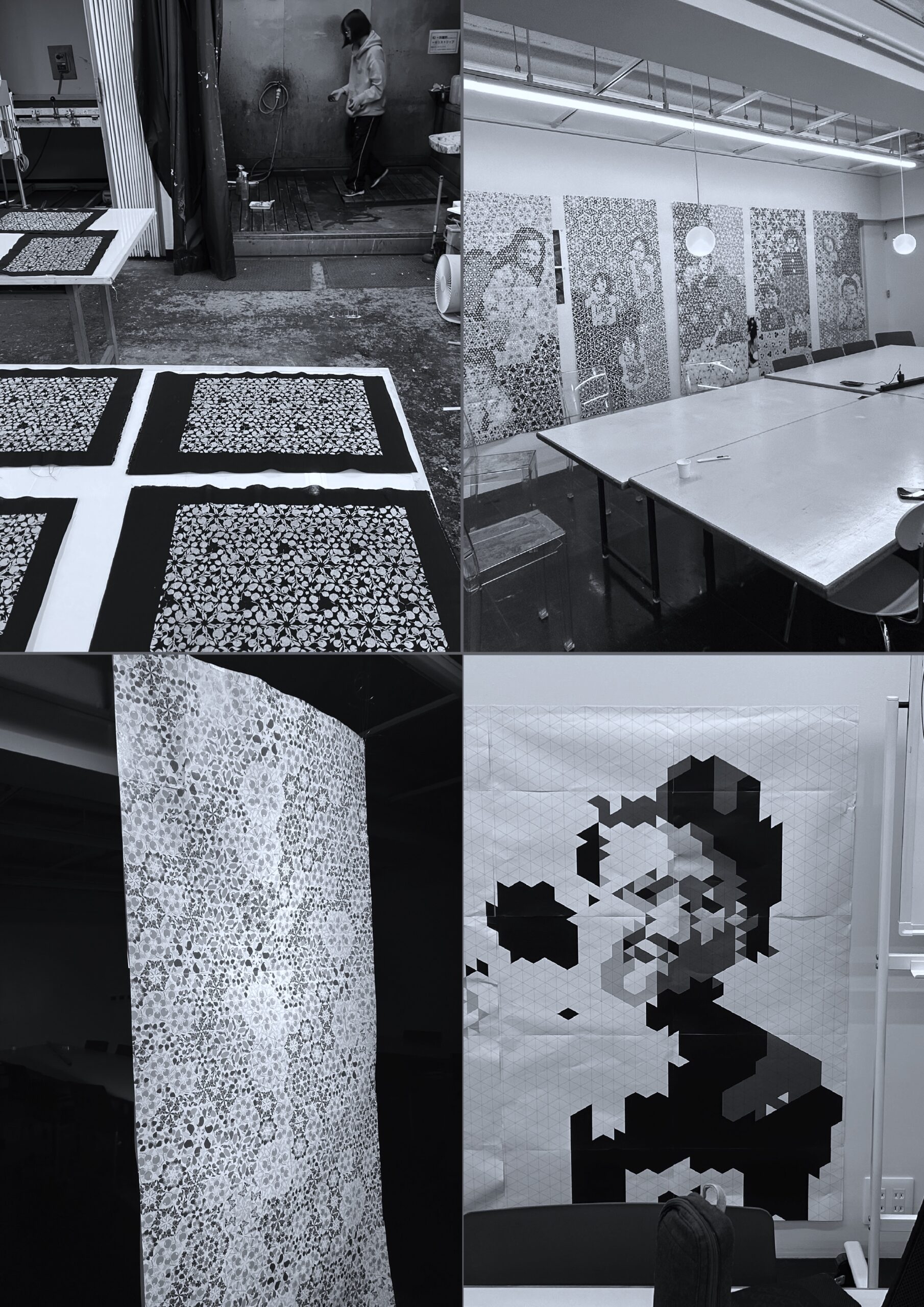 最初から完成を目指すのではなく、試作や反復を重ねながら少しずつ形を見つけていっています。模様を生成する過程で、意図しなかったズレや歪みが生まれることがあり、そうした偶然を排除せずに取り込むことで表現が広がっていきました。考えることと手を動かすことを往復することを意識しています。